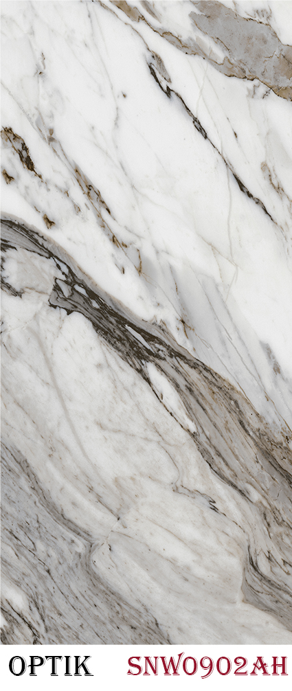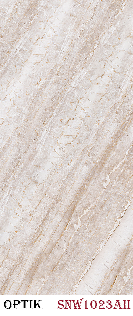 تقدم ألواح Optik مجموعة راقية من الألواح الجدارية خفيفة الوزن وكبيرة الحجم (2,800 × 1,220 مم) تعزز الديكورات الداخلية السكنية والتجارية على حد سواء. مصنوعة من أكثر من 70% رخام ومواد قائمة على SPC، تتميز هذه الألواح بتقنية الطباعة الرقمية، وطلاء UV، ولمسات راتنجية مع خطوط وظلال ذهبية، مما يخلق مظهرًا فاخرًا يشبه الحجر والمعدن. تضيف التصاميم المميزة على شكل “الكتاب المفتوح” تأثيرًا بصريًا سلسًا وجذابًا. ألواح Optik متعددة الاستخدامات، ويمكن تركيبها بسهولة على أسطح مثل الخرسانة، والألواح، والجص.